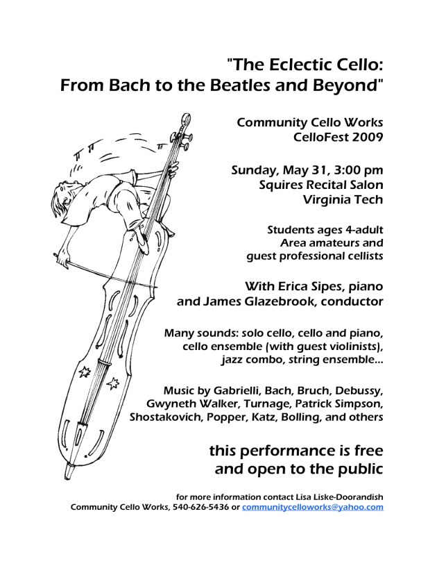 CelloFest 2009: The Eclectic Cello Share this: Click to share on X (Opens in new window) X Click to share on Facebook (Opens in new window) Facebook Click to email a link to a friend (Opens in new window) Email Like Loading...