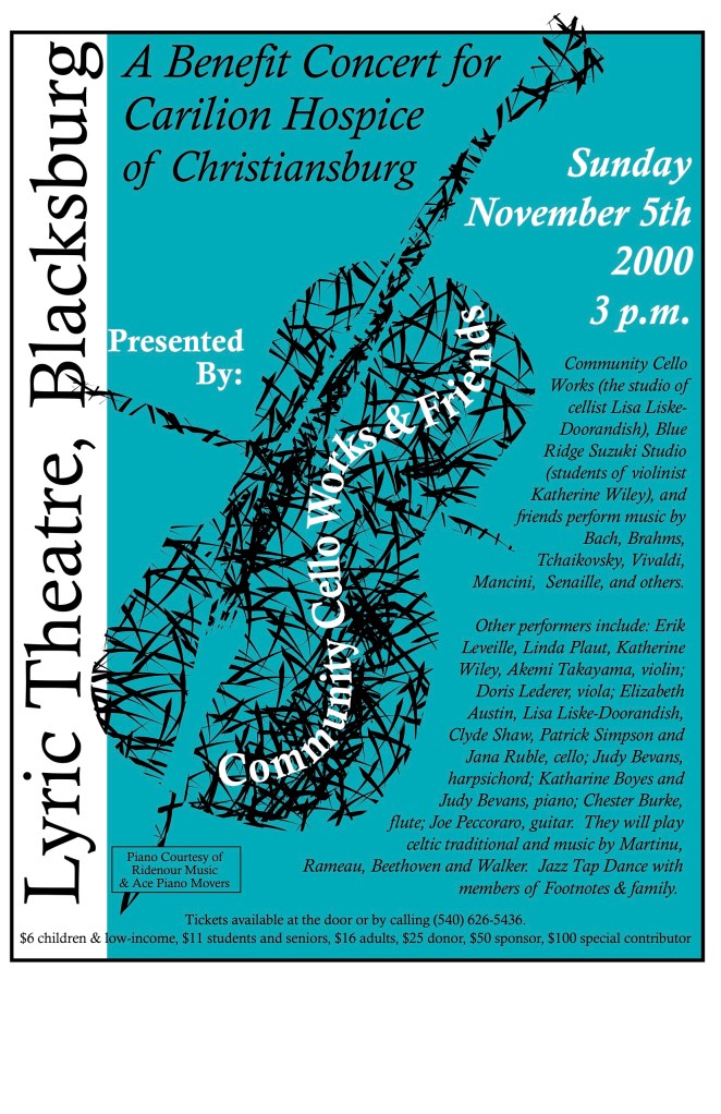 Community Music Events Community Cello Works has an extensive history of community oriented events including concerts, fundraisers, practice-a-thons and integrative workshops. Past events are listed here while those planned for the future can be found here. Share this: Share on X (Opens in new window) X Share on Facebook (Opens in new window) Facebook Email a link to a friend (Opens in new window) Email Like Loading...