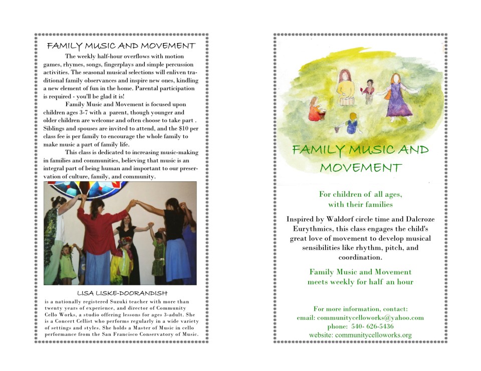 Family Music and Movement Share this: Click to share on X (Opens in new window) X Click to share on Facebook (Opens in new window) Facebook Click to email a link to a friend (Opens in new window) Email Like Loading...
